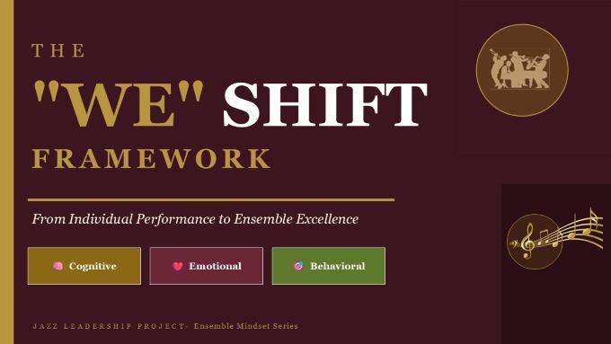 The Jazz Metaphor: In a great jazz ensemble, each musician knows when to step forward and when to step back. A soloist doesn’t play over the entire song, they create space for the bass to breathe, for the piano to respond, for the drums to carry the groove. Shared Leadership is not a theory in jazz. It is the practice every single night.